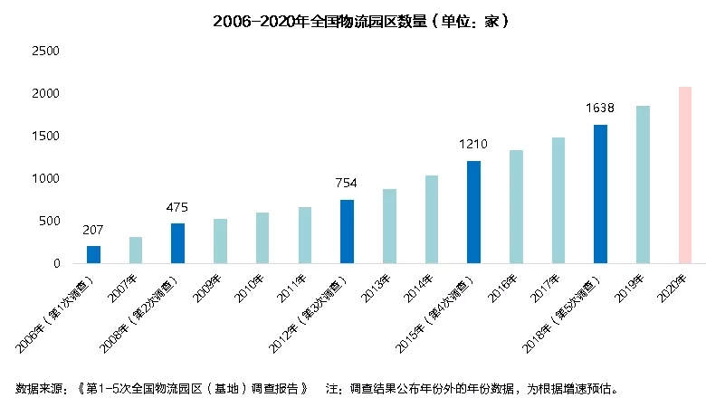 物流地产行业仍然具有较强的吸引力,全国物流园区数量稳步增加。根据2018年第5次官方调查数据,全国物流园区数量达到1638家,年复合增长率超10%,预计2020年有望达到2000家物流园区。