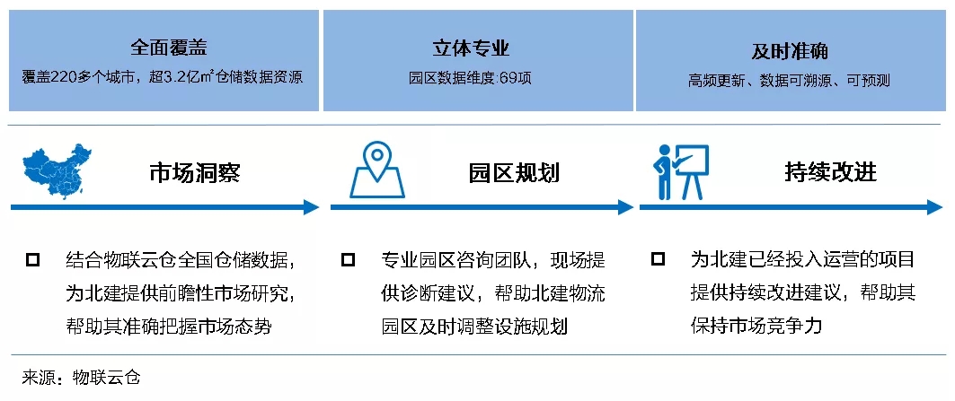 在北建项目中,物联云仓为其物流地产项目建设和运营管理业务提供专业咨询和决策支持,帮助北建实现园区的持续改进,助力其建立长期竞争优势。